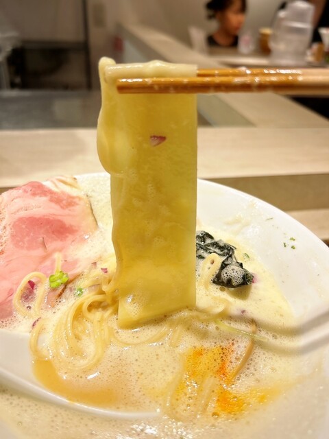 週末の今日は高崎で昼食です。なかなか来ないところですので事前リサーチして気になっていた「鶏白湯泡ramen たまき」さんに伺いました。高崎駅西口から徒歩5分ぐらいでしょうか。13時30分頃店着、満席で中待ちです。さすが人気ありますね!券売機でメニューをチョイス。デフォの鶏白湯泡ramen醤油1400円をお願いしました。店内かなり洒落た感じでお客さまも女性やカップルが多いですね。店長でしょうか、いい...