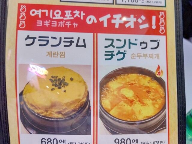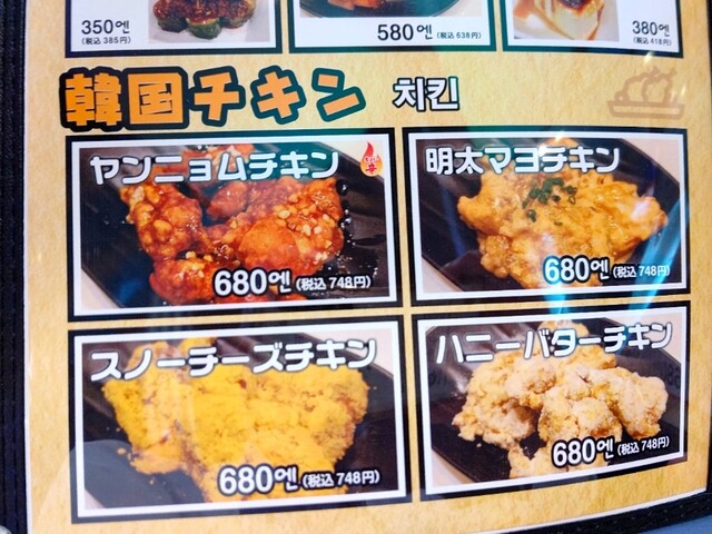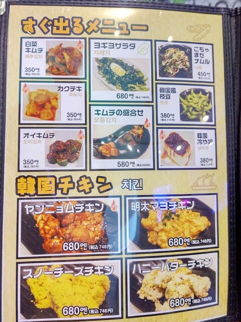 ●料理は、女性店員に確認した韓国のお勧め「ケランチム748円」と「ヤムニョンチキン748円」を頂きました。