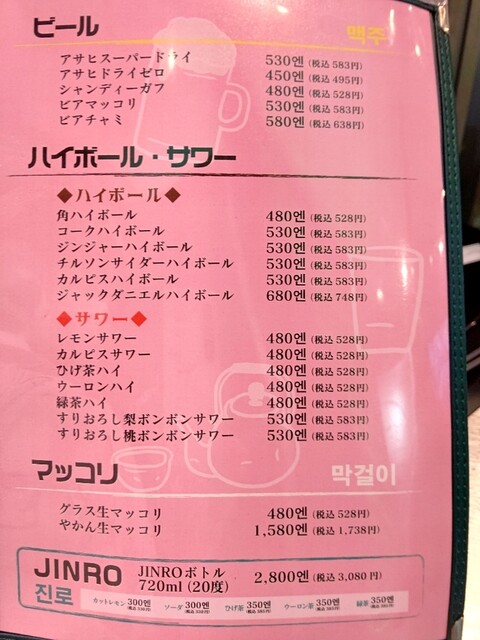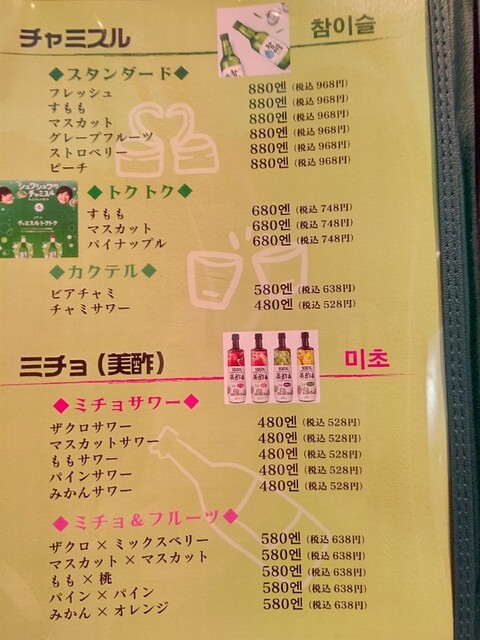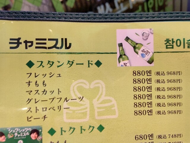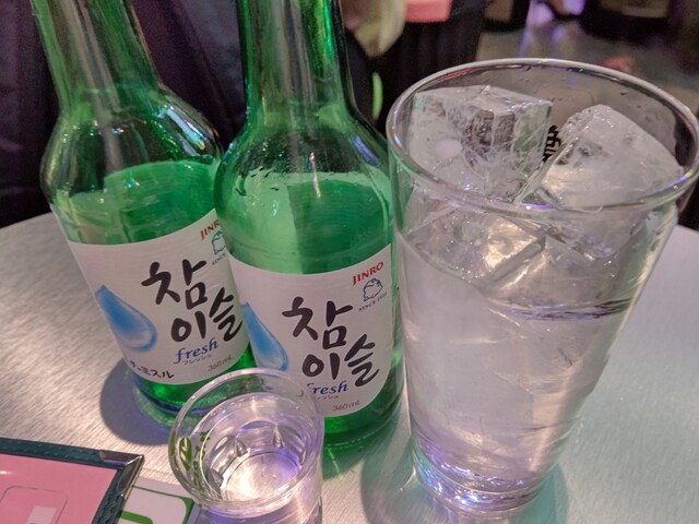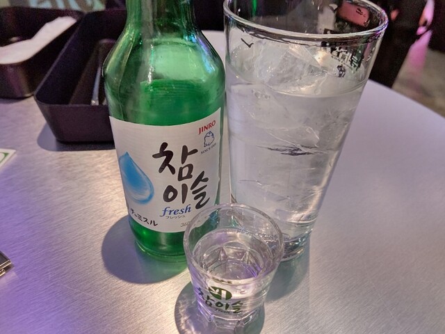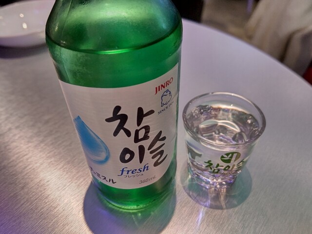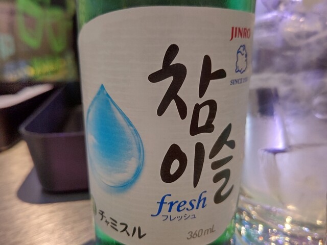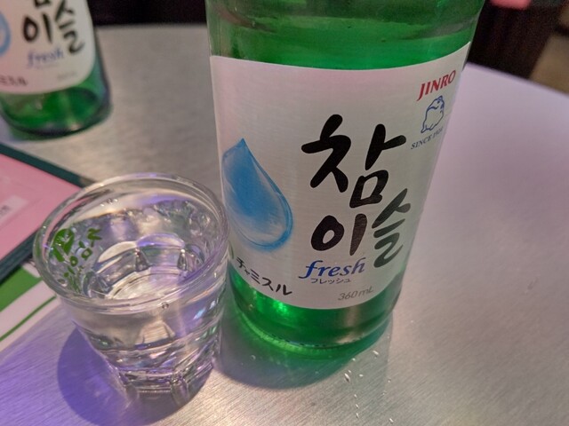 ●女性店員に「飲み放題」があるかと確認したところ無いとの事で「チャミスル(フレッシュ・360ml)968円」を注文して写真撮影の許可を頂きました。