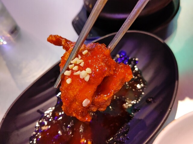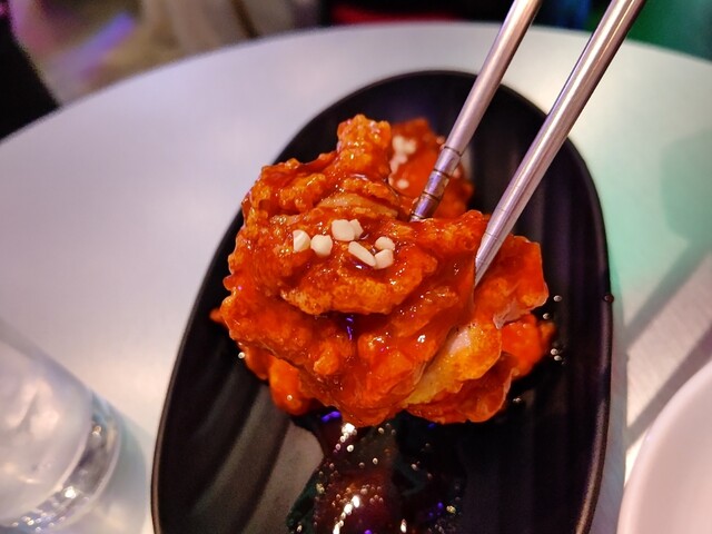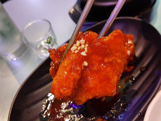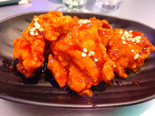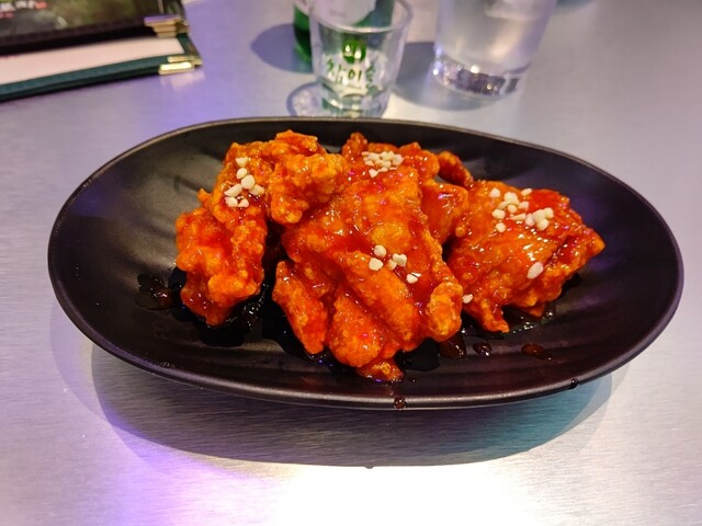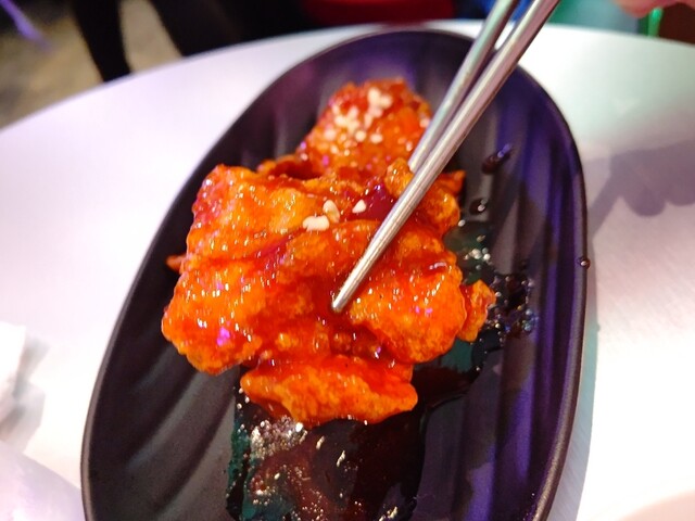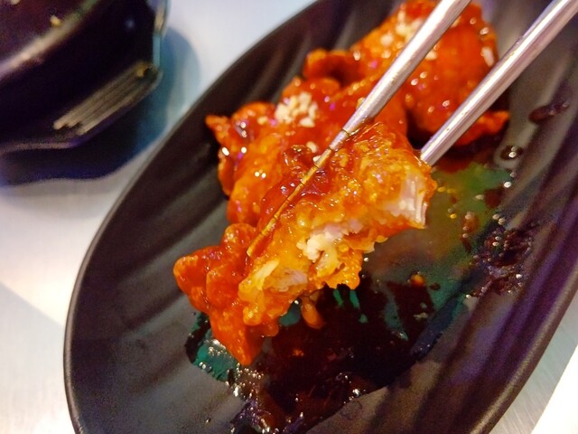 ●女性店員にお勧めされた「ヤムニョンチキン」は、甘辛い味付けがしてありお肉が柔らかくてピリ辛で非常に美味しかったです。