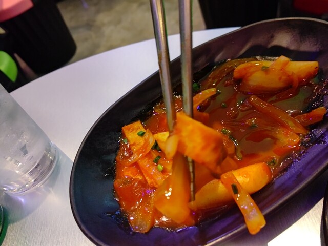 ●トッポギは、お肉と玉ねぎ等が味付けがしてあり辛さが控えめで美味しかったです。
