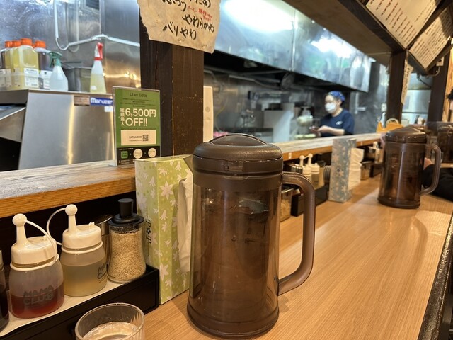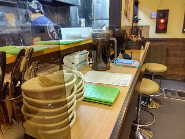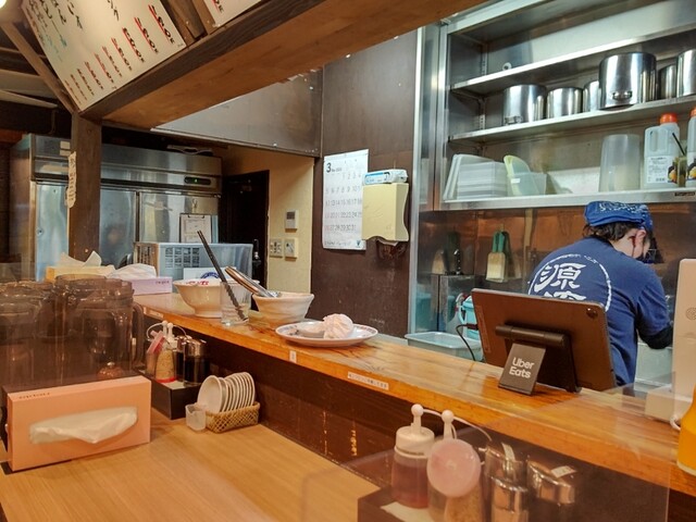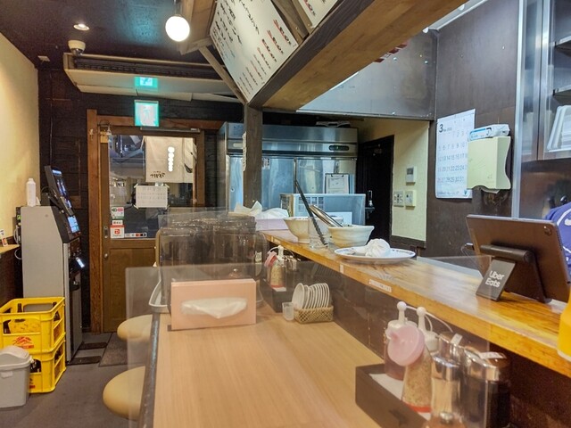 ●お店に入り、右側にある券売機で食券を購入して左側にあるカウンター席へ着座しました。