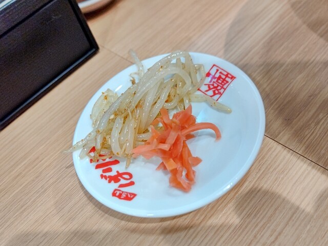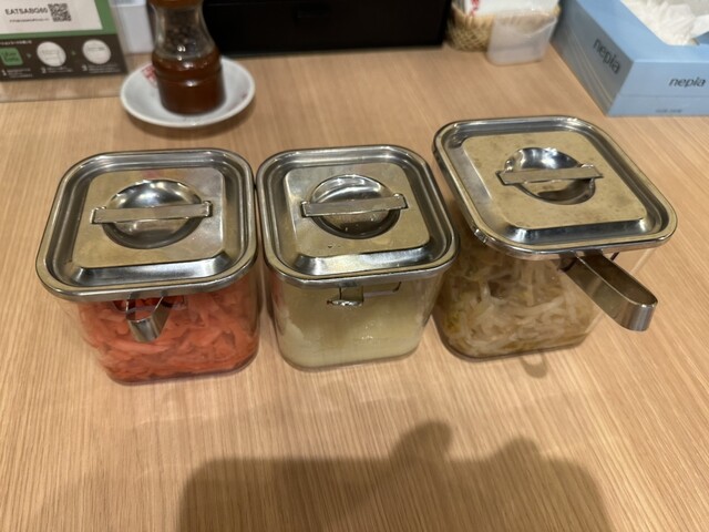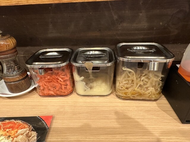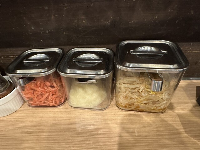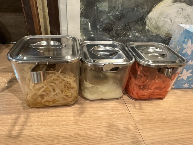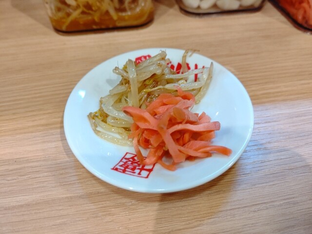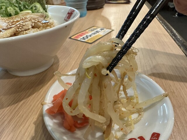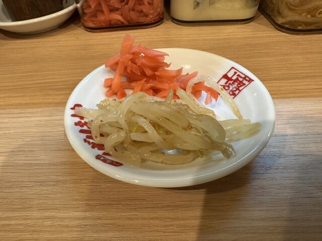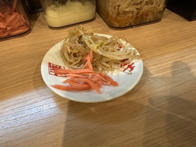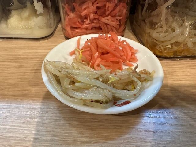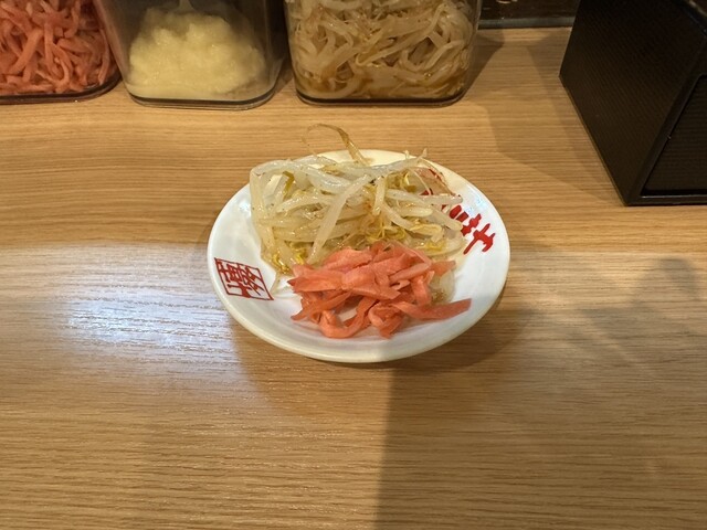 ●最初は、そのまま食べてお店の味を楽しみ少し食べたら無料トッピングのもやしと紅生姜をトッピングして別の味を楽しみました。