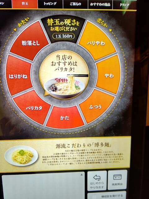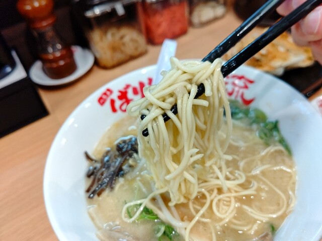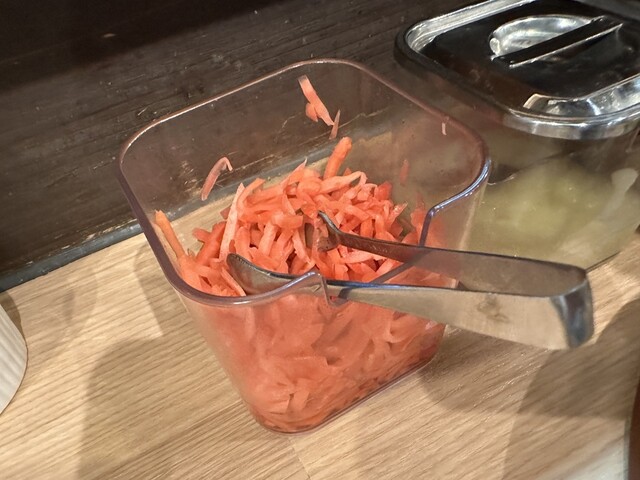 ●麺は、硬さを普通にしましたが腰のある極細麺で美味しかったです。店員に麺の量を確認したところ100gありました。