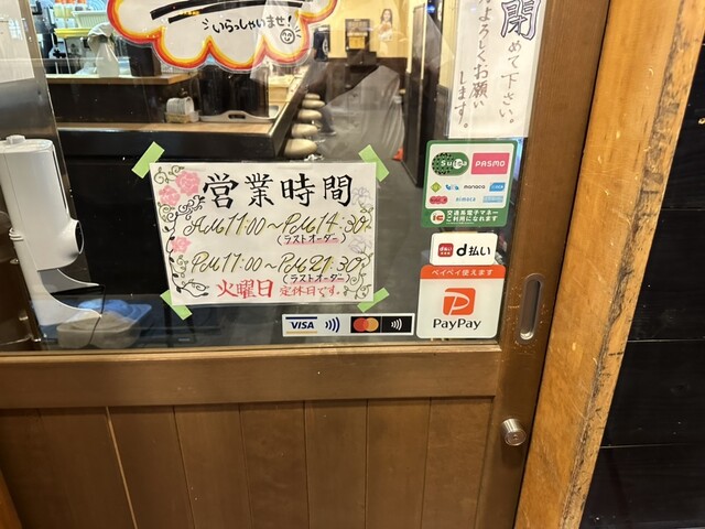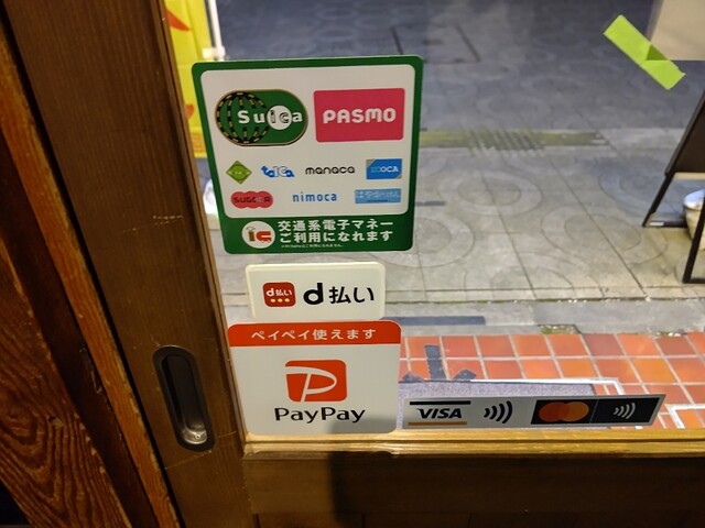 カード可 (VISA、Master) 電子マネー可 (交通系電子マネー(Suicaなど)) QRコード決済可 (PayPay、d払い) |