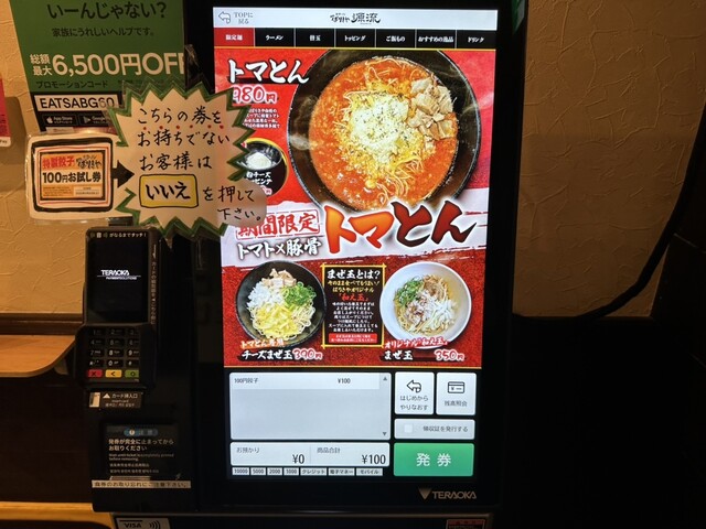 ●今回は、間違えないように「鉄板焼きラーメン(並盛・100g)840円」の食券を購入して「特製餃子」と一緒に注文しました。