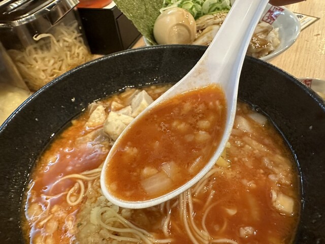 ●スープは、白濁してこってりした二郎系に似た味の豚骨スープで美味しかったです。