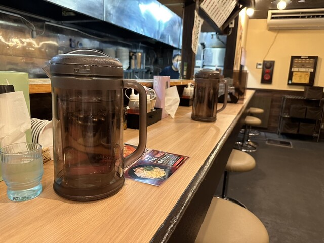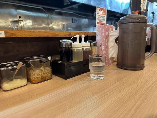 ●カウンター席でお冷やを飲みながら待っていると5分後に発注した「鉄板焼きラーメン」が着丼しました。