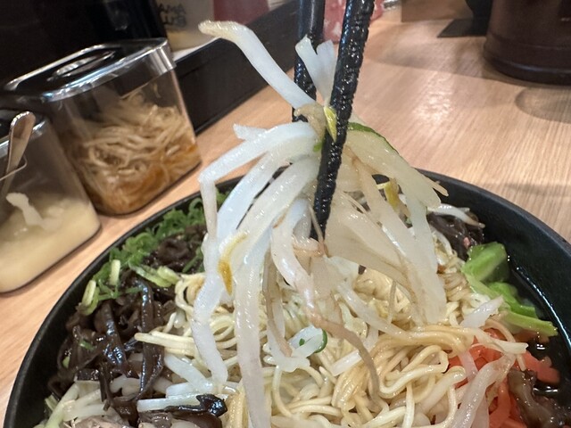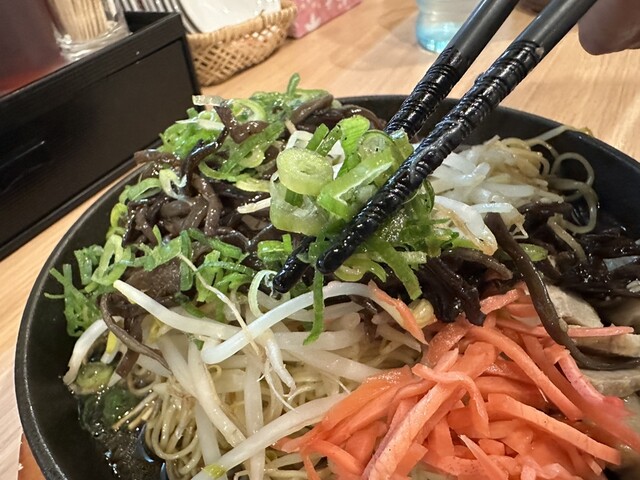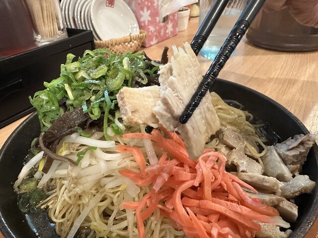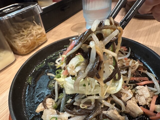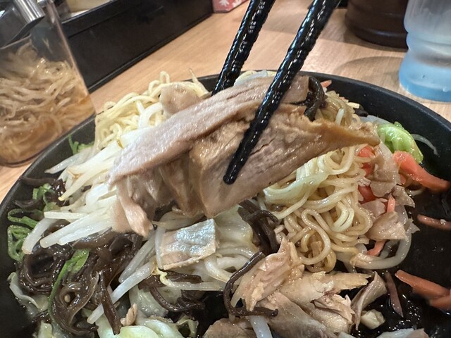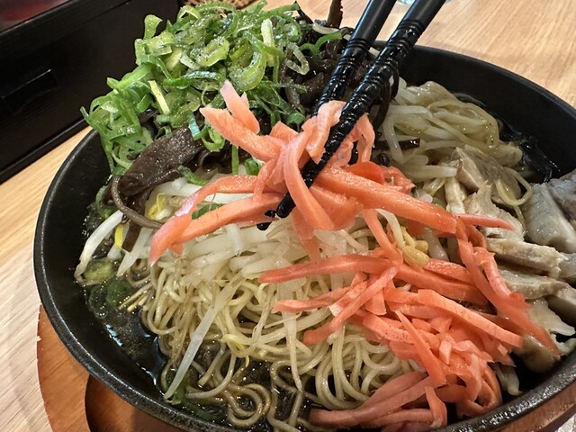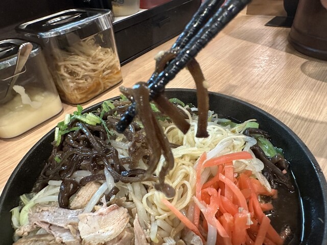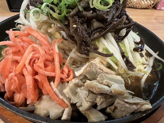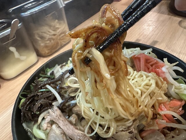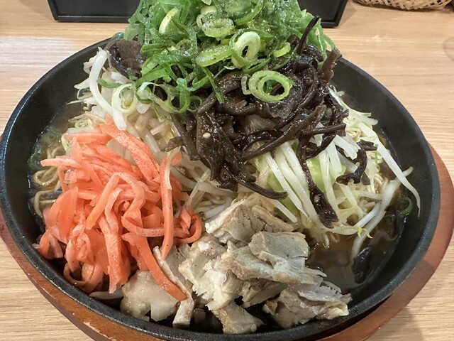 【2025.6.16(月)】鉄板焼きラーメン(並盛・100g)950円の野菜と木耳