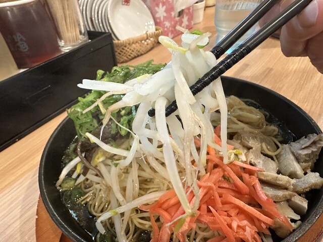 【2025.6.16(月)】鉄板焼きラーメン(並盛・100g)950円のもやし
