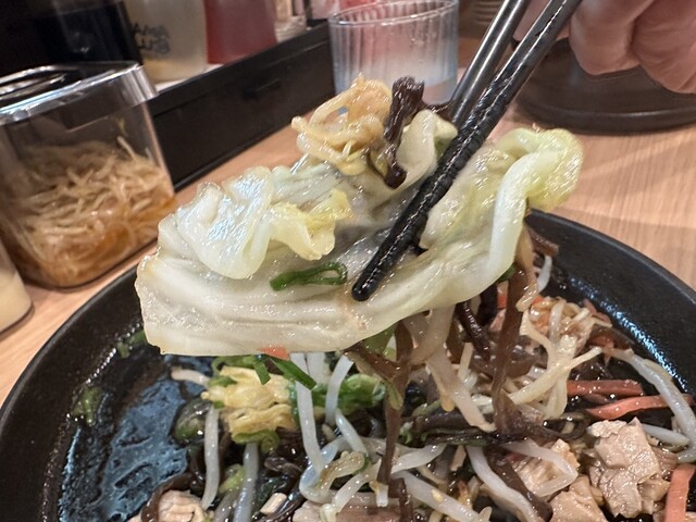 【2025.6.16(月)】鉄板焼きラーメン(並盛・100g)950円のキャベツ
