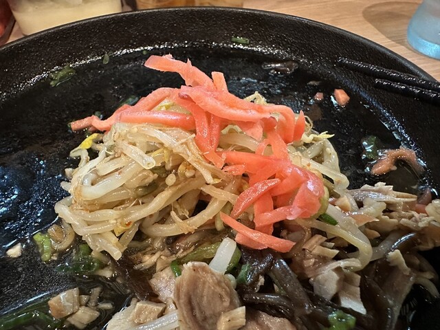 【2025.6.16(月)】鉄板焼きラーメン(並盛・100g)950円のもやしと紅生姜