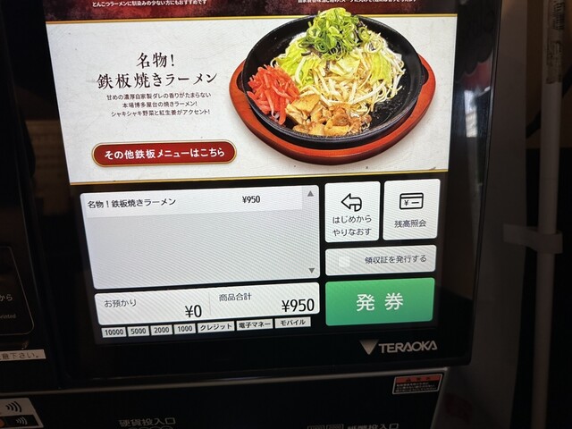 ●次回の訪問時には、間違えないように注意して「鉄板焼きラーメン840円」の食券を購入して食べたいと思います。