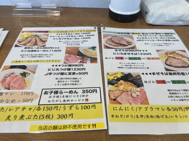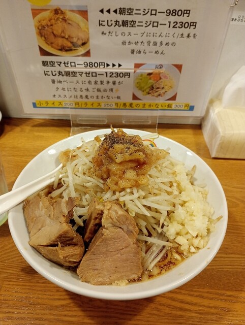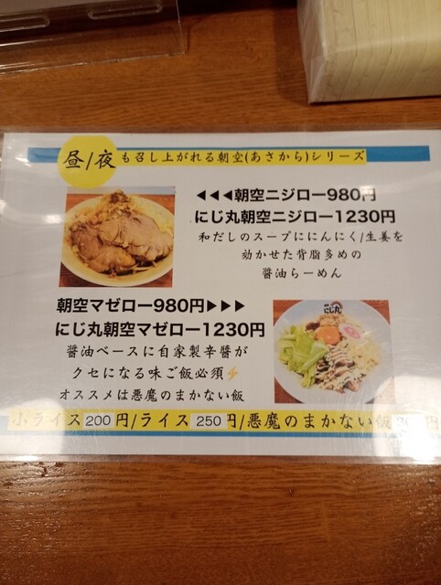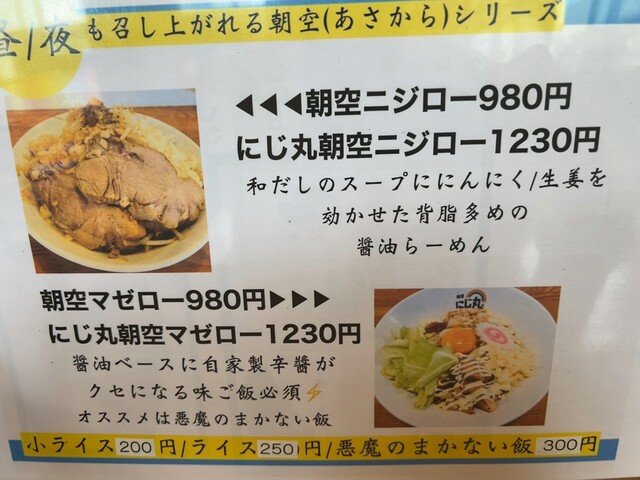 今回は「朝空ニジロー」を注文。こちらのお店は平日の一部の曜日は朝営業をしており、「朝ラー」が楽しめるのが特徴。高崎ICからすぐの立地ということもあり、朝からの利用にも便利そうです。また支払いは注文時...