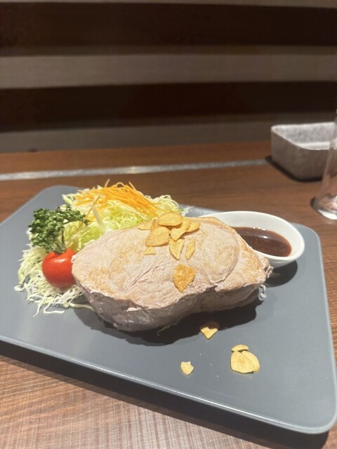 アヒージョ、出汁巻きとつまみながらやってきました1ポンドポーク2,500円。