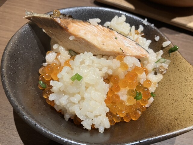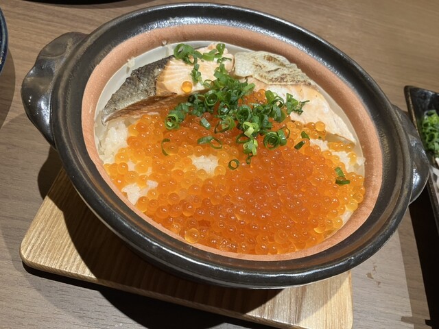 そしてサーモンといくらの土鍋ご飯はたっぷりのいくらがのっていてサーモンも身がしっかりしていてご飯もいい感じに焚けていてめっちゃ美味しい✨