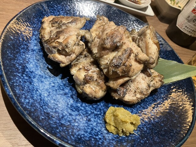 名物地鶏の網焼きは鶏の旨みがすごく香ばしく焼けていてめっちゃ美味しい✨