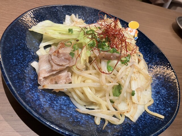 チャンポン麺の塩焼きそばは麺が四角い麺で味付けも良くお肉もお野菜も美味しい✨