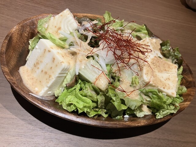 寄せ豆腐の胡麻和えサラダも新鮮でシャキシャキ✨