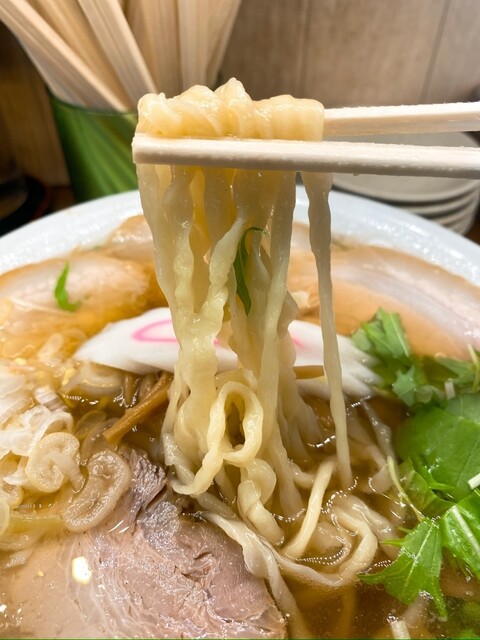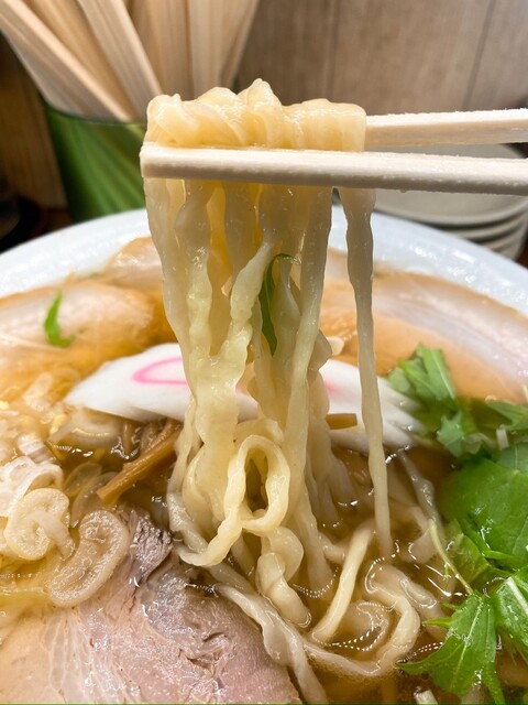 あっさりとした醤油ダレに動物系の清湯スープが合わさり啜る度に心落ち着く(´˘`๑)"ウンウン