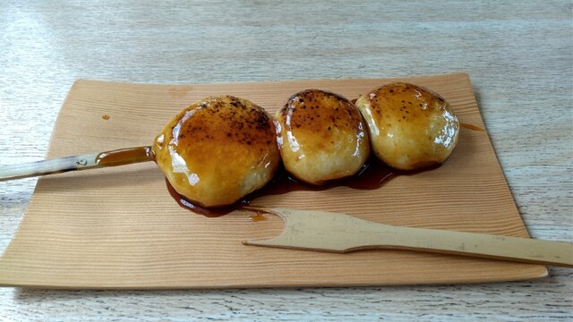 此処の焼きまんじゅうのタレは塩味が強い