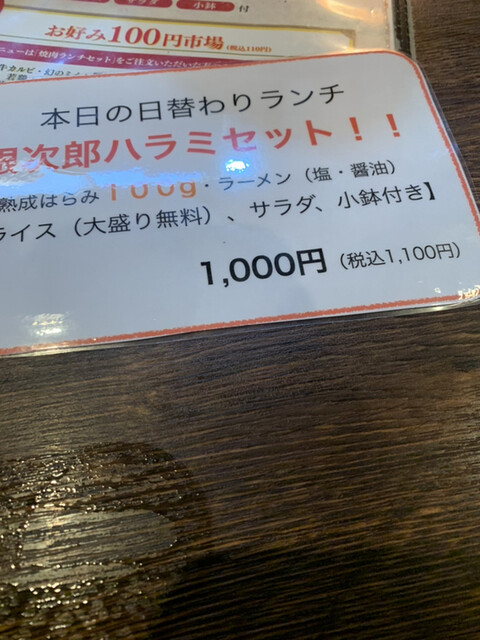 平日のランチに焼肉屋の銀次郎さんを訪問。
