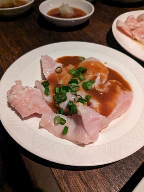 本日の仙台牛盛合せは中落ちカルビ、カルビ、ロースです。先日、グルメ番組で焼肉が特集されており、ミノを美味しそうに食べてたのを観て、幻のミノ注文しました(^-^)...