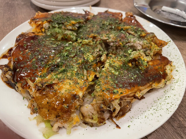 伊勢崎の夜は小雨模様だったのもあり夜営業の店もあまりない感じだったので、すぐ近くで営業していたお好み焼き屋にしました。豚玉780円とドリンク2杯各450円と、お通し300円で、1980円のところ、どこ...