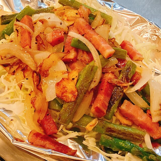 広島焼きなので、本来だったらキャベツてんこ盛りで作...