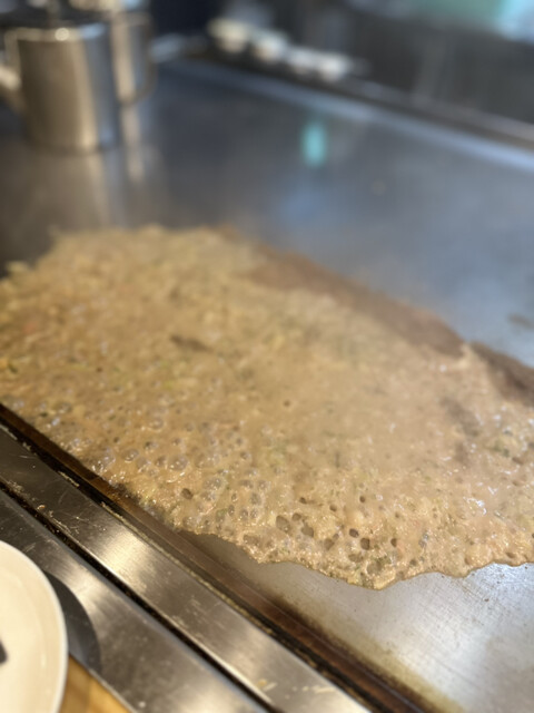 繁華街で深夜営業している広島風お好み焼きのお店で食事しましたよ。