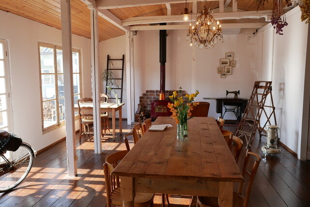 ランチは、キッシュプレートと、オニオンズラタンスープの2つ!どちらか決めて予約するよ♪スイーツとドリンク付き!
