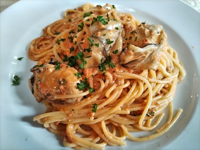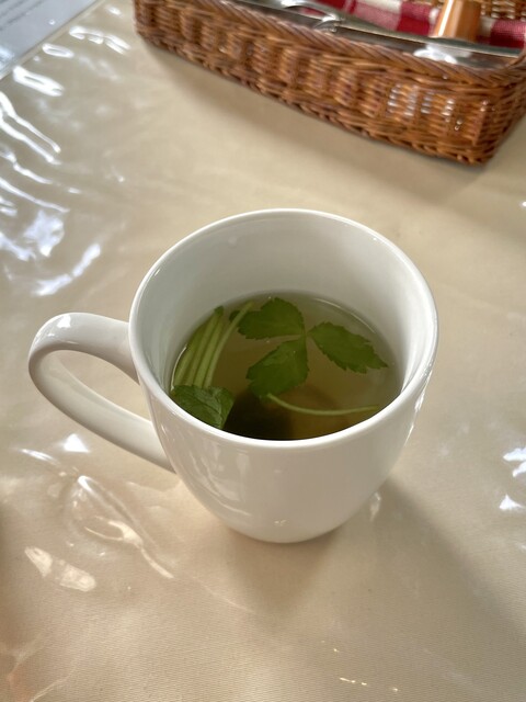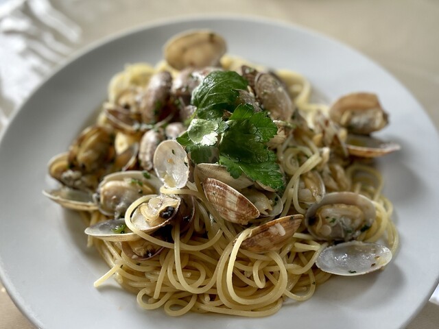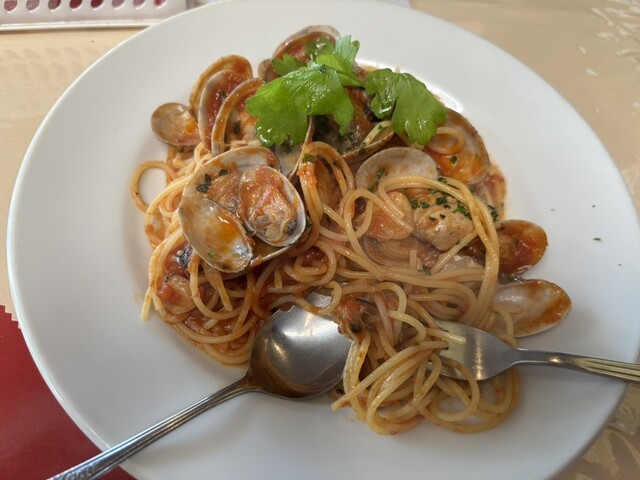 オーダーしたのは、渡り蟹のトマトパスタ¥1400➕ミストセット¥700(スープ、サラダ、ドリンク、デザート付き)