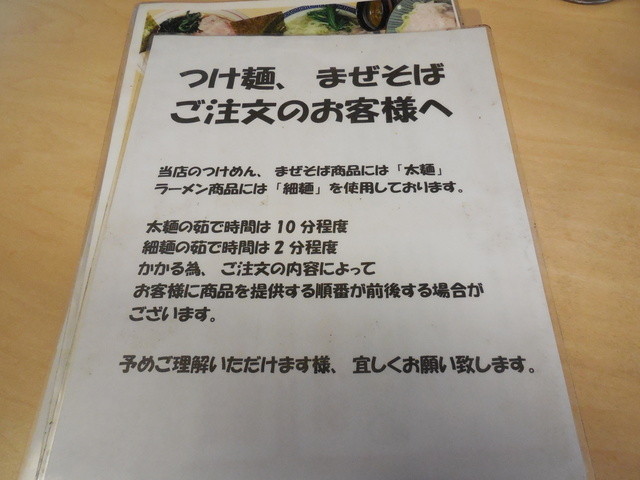 つけ麺・まぜそばは太麺、らーめんは細麺