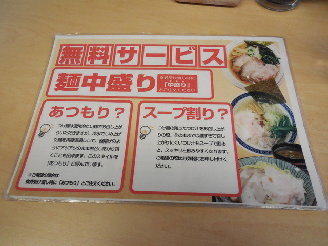 中盛は無料、大盛200g増しは+100円、男盛300g増しは+200円