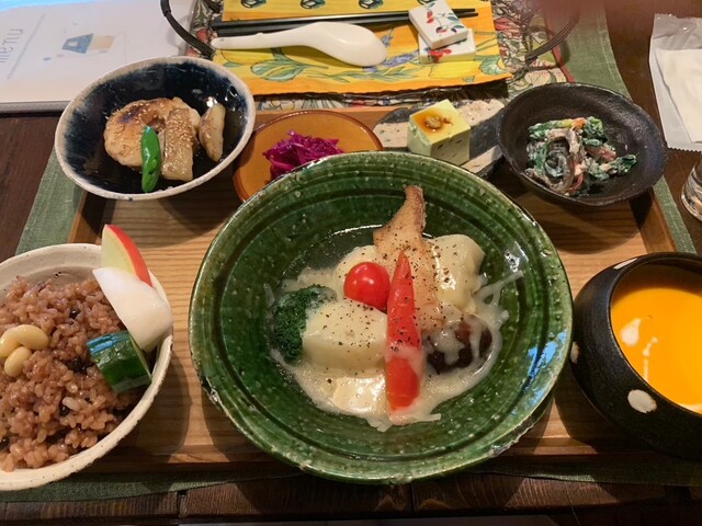 古民家をカフェにした建物で、入口を開くとまるで別の世界に来たような気持ちになります。女性客が圧倒的に多いですが、先日は男性のお客様を3人〜くらい見掛けました。新鮮なお野菜がお好きな方には男女問わずおすすめできるお店だと思います。