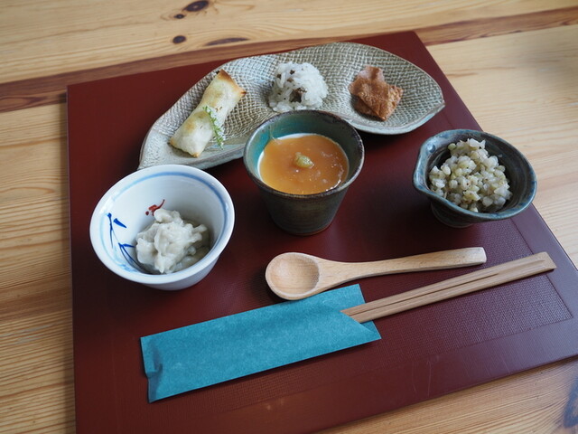 桐生でのランチを探している時に偶然見つけた 何やらオシャレな蕎麦カフェ。 ナビで辿り着くと広い敷地に緑の建物が素敵です✩.*˚ 靴を脱いで上がると陶芸品や手織り体験コーナーなどがあり、開放的な空間が広がり お食事は仕切りのある別室でいただけます。 物腰柔らかな女性オーナーお一人で切... 詳細を見る