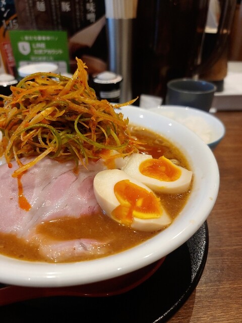 初訪。純米味噌ラーメンのお店だが醤油が食べたくて佐野ラーメンを注文。口コミではやれ味がしないだのしょっぱいだの、いろんな意見があったがオレは美味いと思ったよ。今どきのラーメン屋はそんな下手なラーメン出...