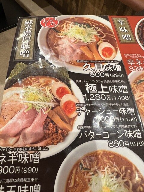 数種類の純米味噌をブレンドした、濃厚で余韻が残る味噌らーめんが楽しめる当店。サッと炒めた野菜をらーめんに加えることでスープに甘みが溶け出し、より深い味わいに仕上げております。人気メニューは「久月味噌らーめん」。ほか、京都産九条ネギをたっぷり乗せた一杯や辛味が自慢の「旨辛味噌」もオススメです。店内はカウンター・テーブル席を完備し、おひとり様からお子様連れまで幅広く歓迎。ぜひお気軽にお越しください。 |