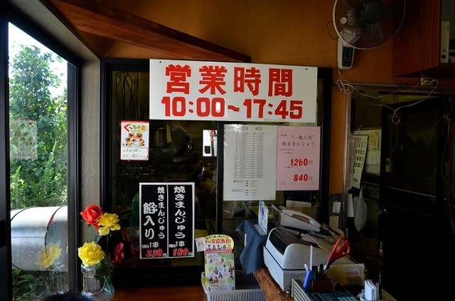 入店してレジで餡入りの焼きまんじゅうを1串注文し焼き上がりを待ちます。