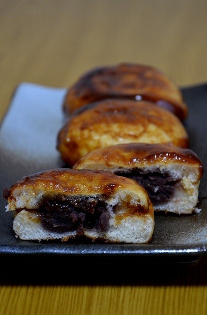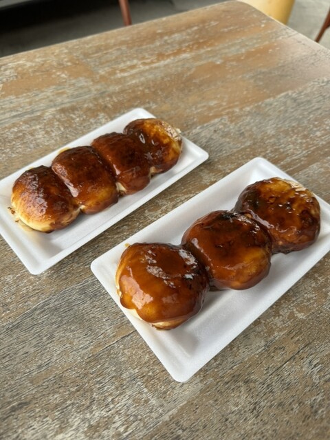 エアコンが効かない店内で待つ事10分程で餡入りの焼きまんじゅうが提供。