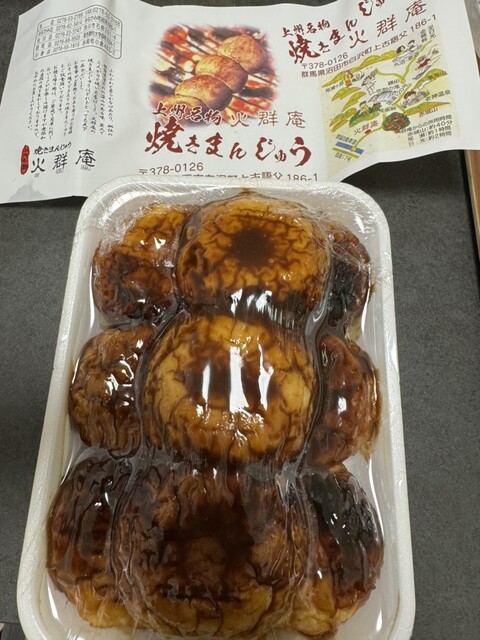 本日の食べ歩きは沼田市の火群庵にて餡入りの焼きまんじゅうを頂きます。