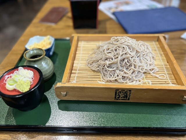 木の温もりが感じられる店内は、平日にもかかわらず満席の賑わいである。待つこと10分ほどで、ボックス席に案内された。連れと一緒に「へぎそば 二人前」2,156円と「天ぷら 舞茸ハーフサイ...