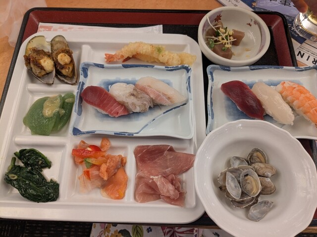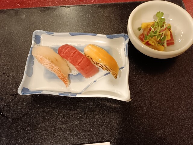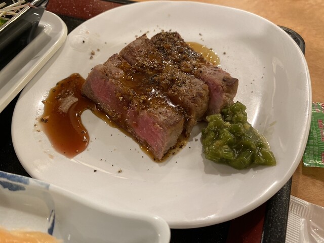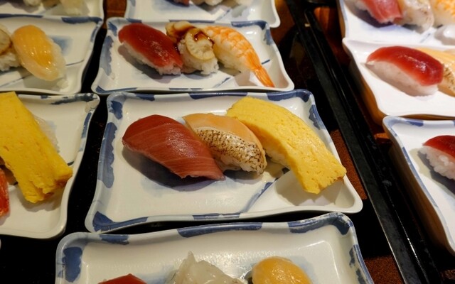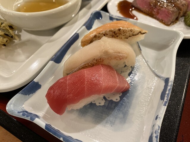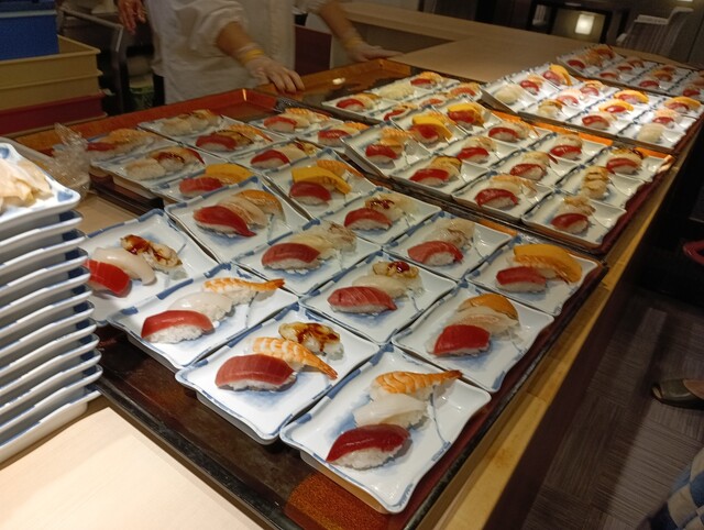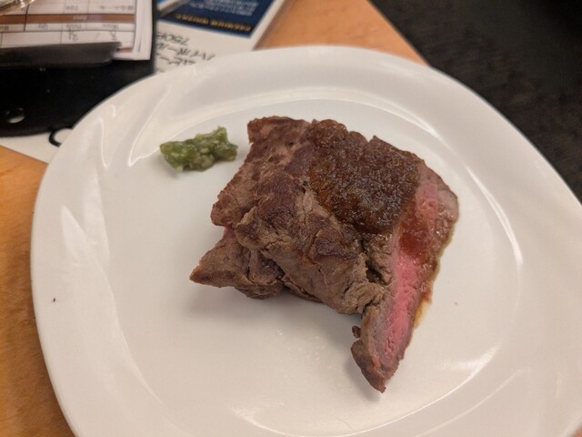 お寿司はその場で握ってくれて、ステーキもその場で焼いてくれています。