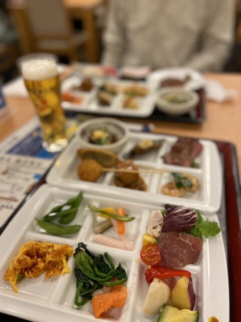 1泊2食付き、食事は会席かバイキングで選べたのでバイキングに。