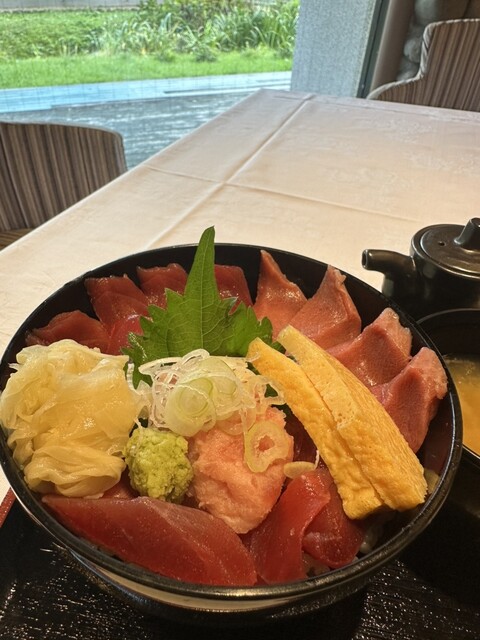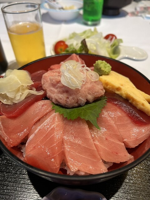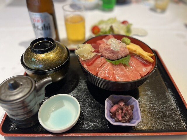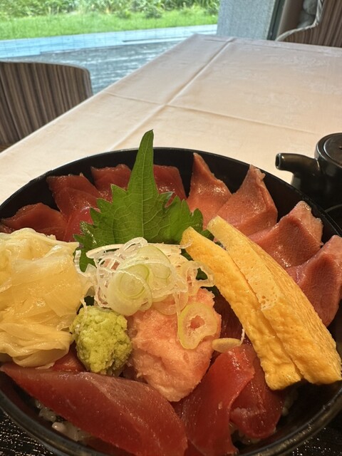 ランチメニューは和洋から選ぶが一押しは鉄火丼。築地から直送した刺身がどんぶり一杯に...