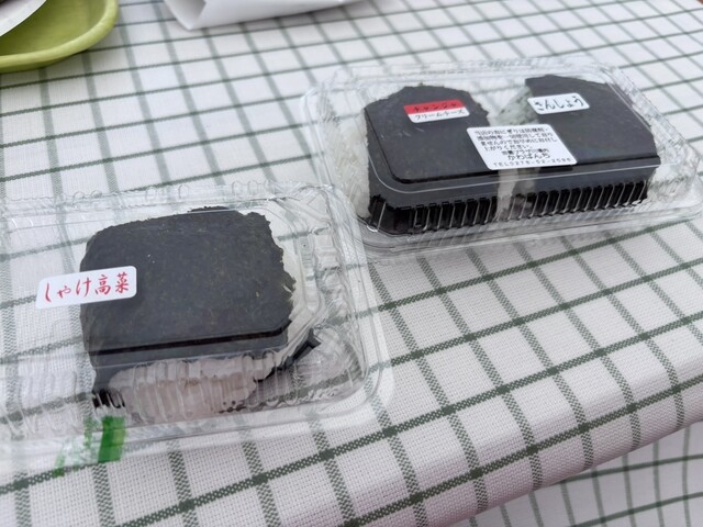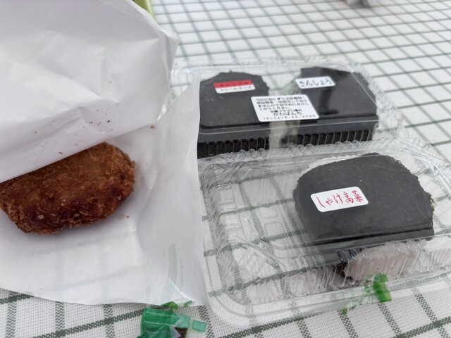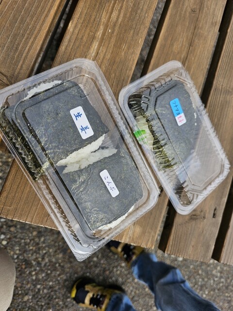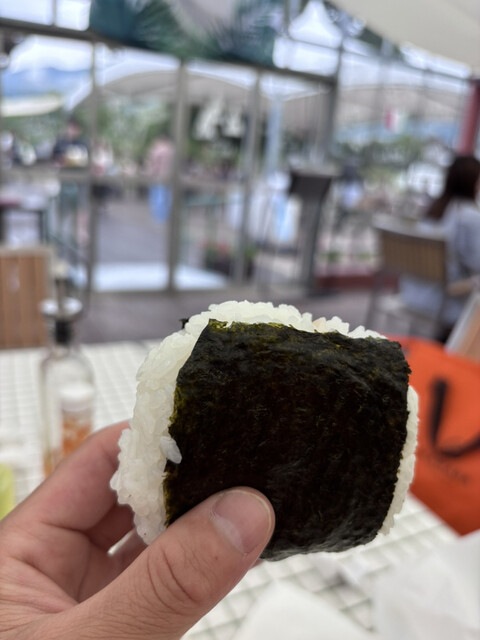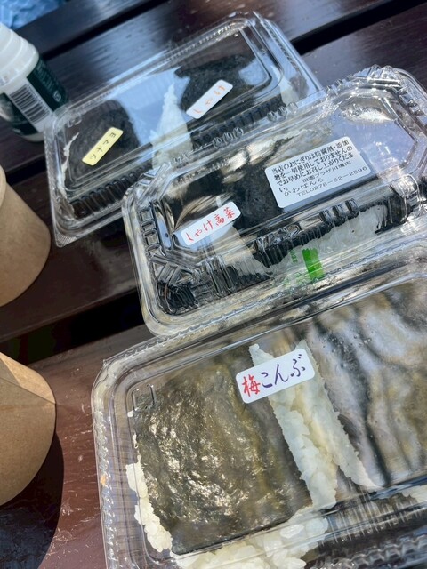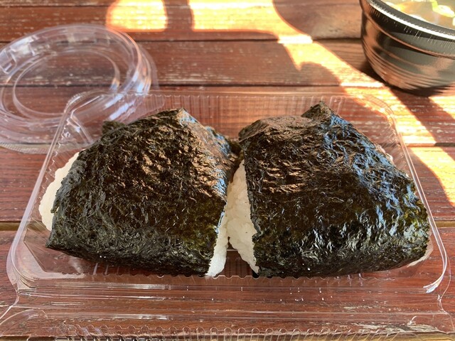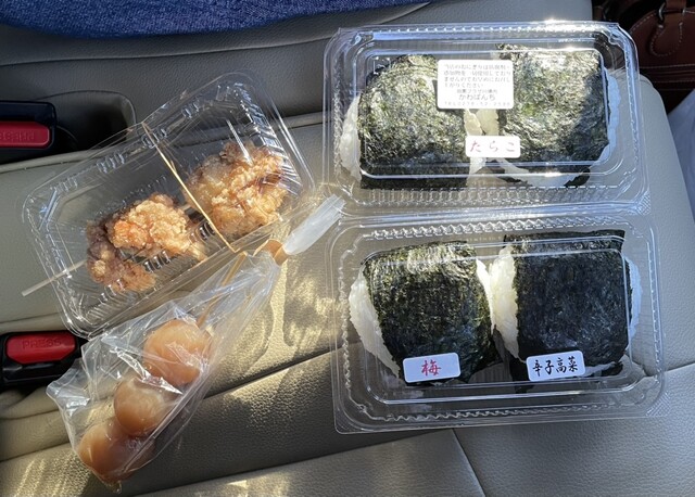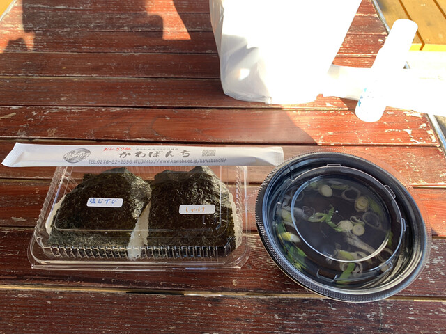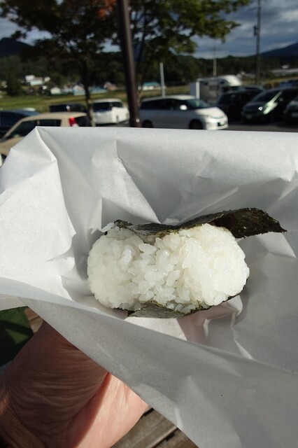 野菜やパンを買った後、川場村のコシヒカリ『雪ほたか』の握りたておにぎ...