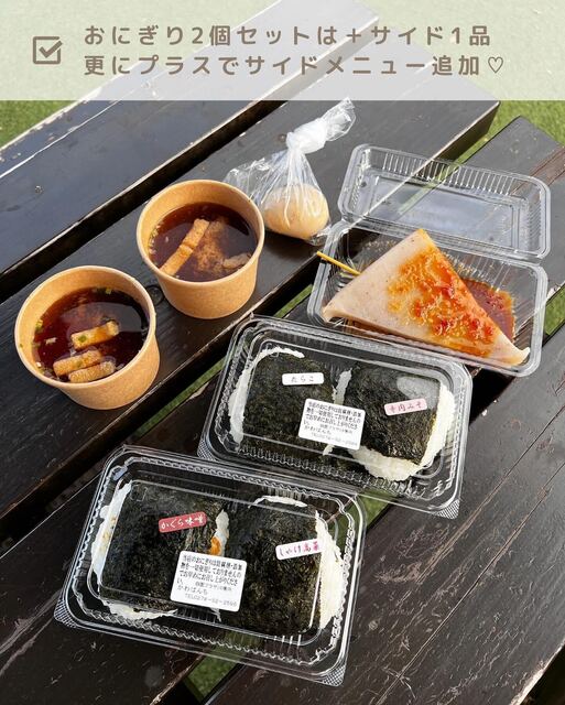お好きなおにぎり2個とサイドメニューの中から一品選べるお得な...