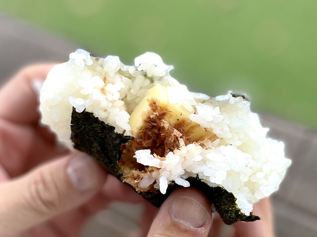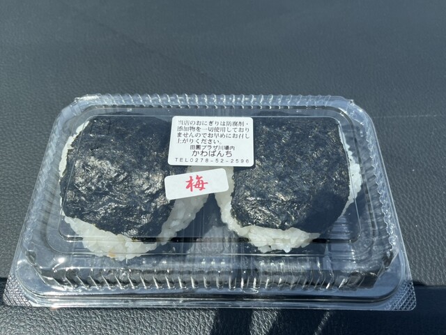 野菜やパンを買った後、川場村のコシヒカリ『雪ほたか』の握りたておにぎりがいただける『かわばんち』にておにぎりを購入♡