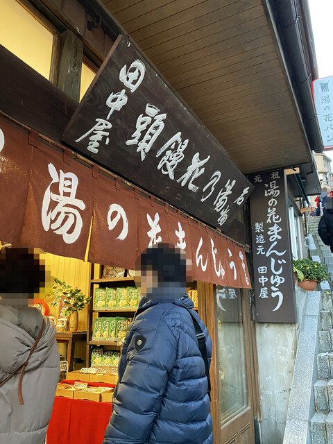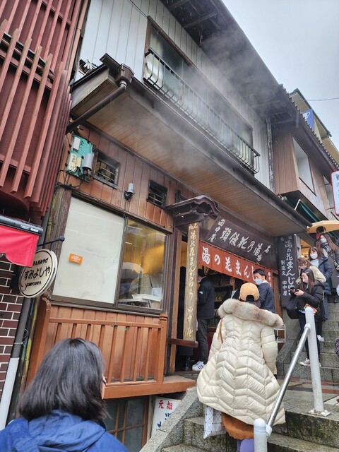 石段街中程より上の左手にあります。 温泉まんじゅうのお店。 お土産用と食べ歩き用があり、蒸したてを貰えるのですが、お皿に乗せたまんじゅうをそのまま手で持ってと言われました。... 詳細を見る