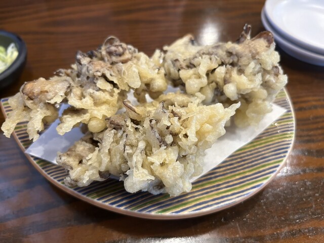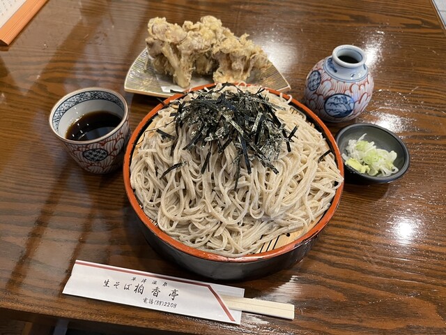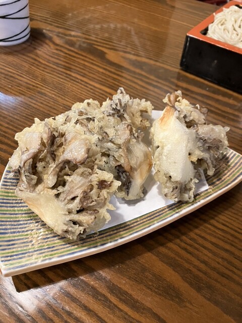 お蕎麦と舞茸天ぷらを注文しました。舞茸は3つで1皿です。サクサクで量もあってとても美味しかったです。予め調べたら人気店との事で並び覚悟で12:00過ぎに行ったのですが荒天もあってか10分位で入れました...